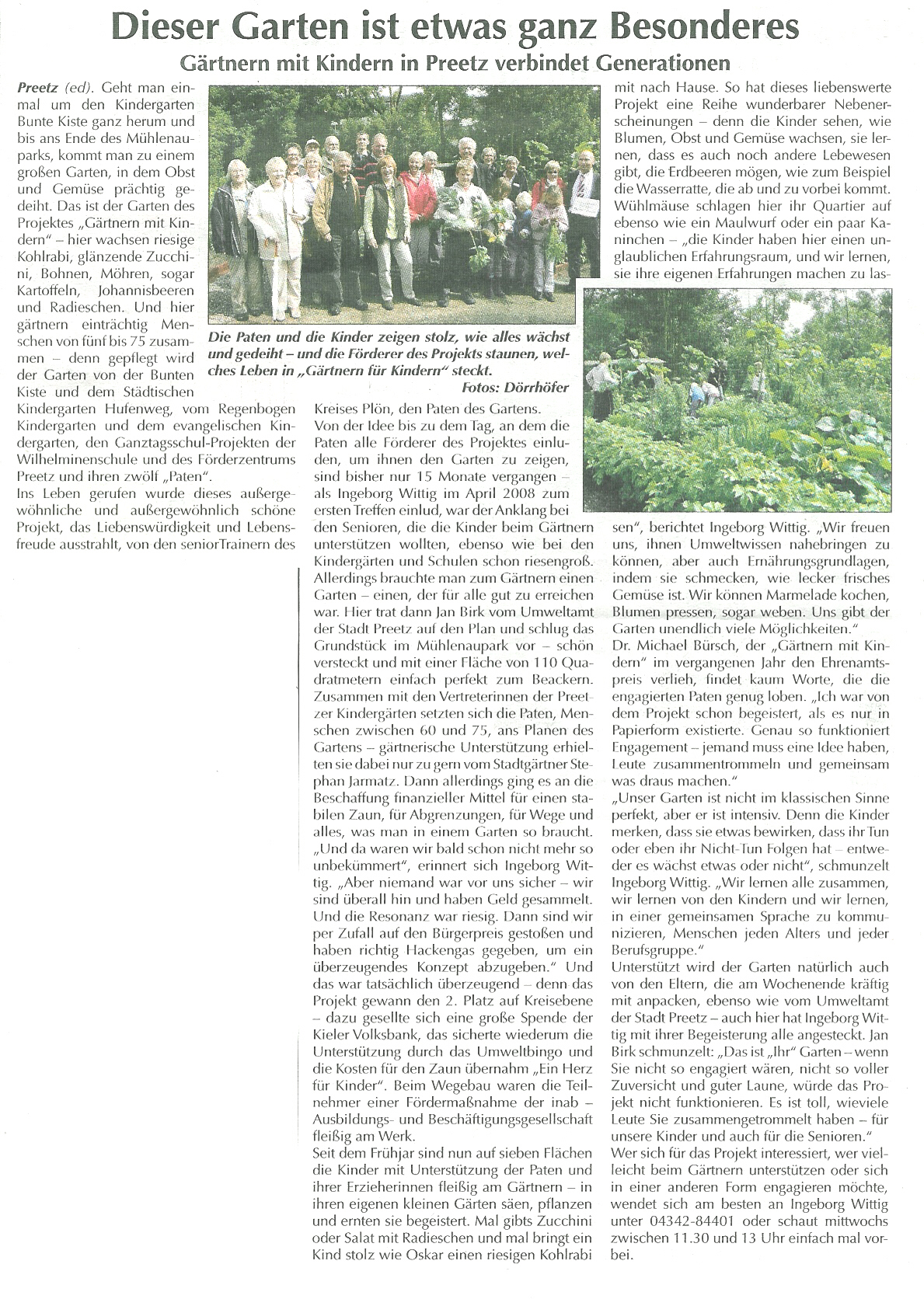• Wir wollen Kindern und Jugendlichen aus Preetzer Kindergärten und Schulen mit den vielfältigen Möglichkeiten eines Nutzgartens ein umweltpädagogisches Angebot schaffen.