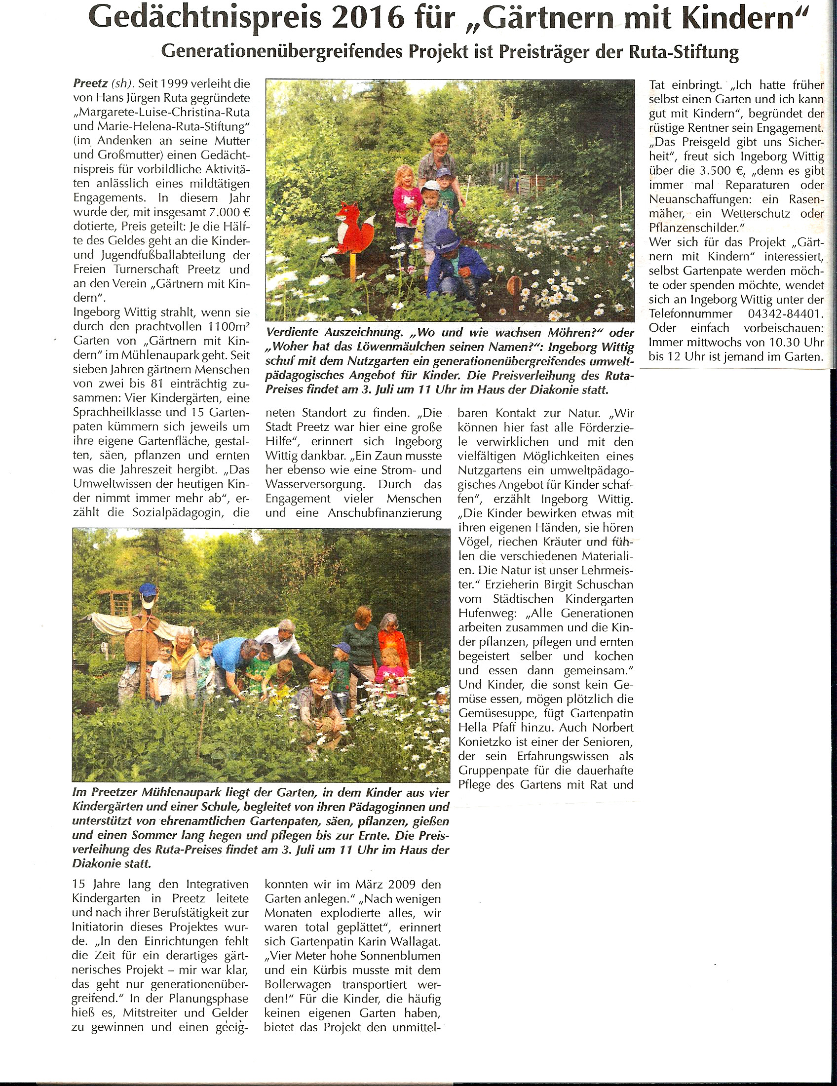 • Wir wollen Kindern und Jugendlichen aus Preetzer Kindergärten und Schulen mit den vielfältigen Möglichkeiten eines Nutzgartens ein umweltpädagogisches Angebot schaffen.
