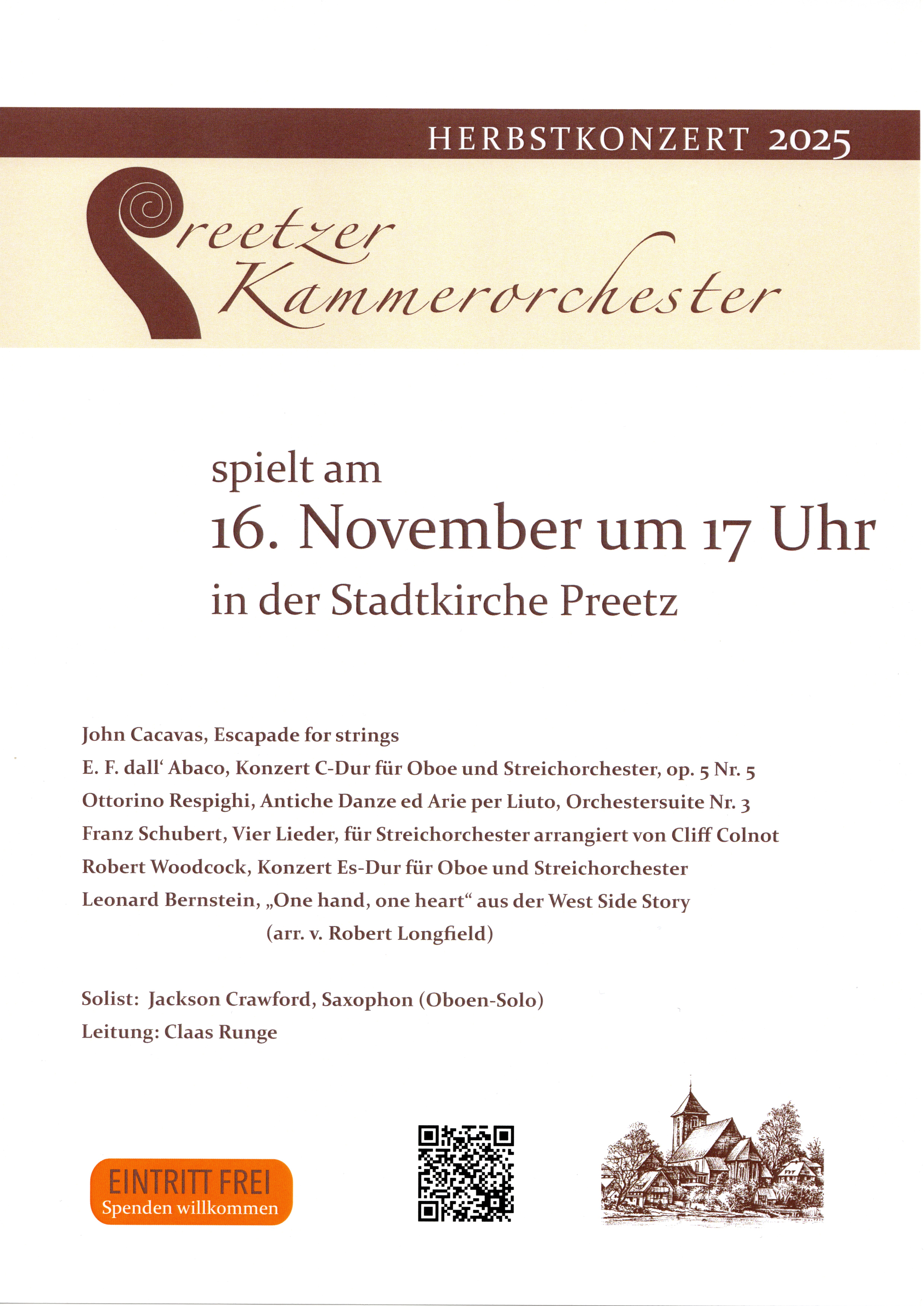 Konzert am 6. November 2022, 17:00 Stadtkirche Preetz